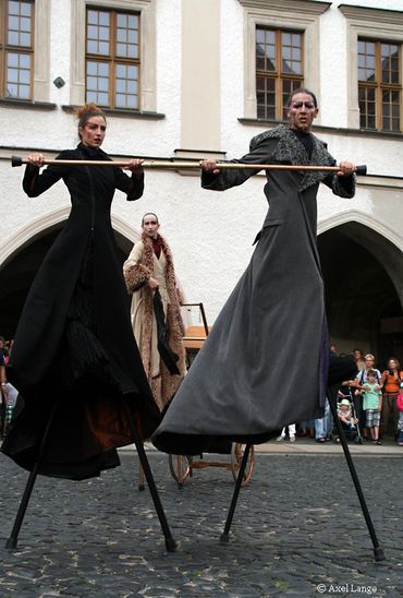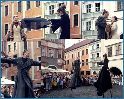 Spectacle d'une durée de 50 minutes, avec trois comédiens-danseurs sur échasses.